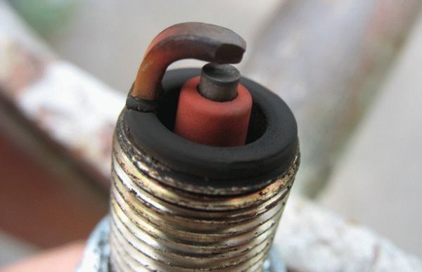 Может случиться и так, что у вывернутой свечи вовсе не окажется ни центрального электрода, ни изолятора. Это происходит в результате продолжительной работы мотора с детонацией, применение низкооктнового бензина, слишком раннее зажигание или заводской брак. Сопутствующие симптомы аналогичны описанному выше случаю. При удачном стечении обстоятельств обломки электрода и изолятора попадут в выхлопную систему и не застрянут между клапаном и седлом, в противном случае потребуется ремонт или замена головки блока цилиндров.
