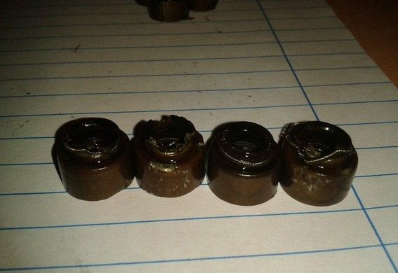 Светло-коричневый цвет налета означает, что двигатель расходует большое количество смазки на угар. Причем проникает масло вместе с горючей смесью – через открывающиеся клапаны. Факт подтверждается тем, что смазочный материал полностью выгорает и осаждается на стенках, поскольку попадает в камеру только на цикле впуска. Причина – критический износ маслосъемных колпачков (иначе – сальники клапанов). Дополнительный признак – большой расход масла, составляющий 0,5–1 л на 1 тыс. км пробега.