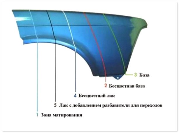 Красят таким методом практически любую часть кузова. Лаком тоже делается переход, который затем особенно тщательно полируется, а потому практически незаметен – зону полировки перехода можно увидеть только тогда, когда точно будет указана ее локализация. Сама техника покраски переходом обычно применяются в тех случаях, когда: