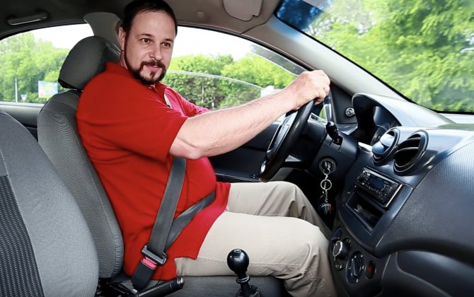 - Настроить положение сиденья. Для этого нужно отодвинуть его от руля таким образом, чтобы при положении спинки около 100⁰ можно было без труда достать ступнями до педалей (ноги при этом должны быть немного полусогнутыми). Колени располагаются на одном уровне с бёдрами. Между сиденьем и сгибом коленей должен оставаться промежуток в 2 пальца, а ягодицы должны быть максимально близко к спинке сиденья.
