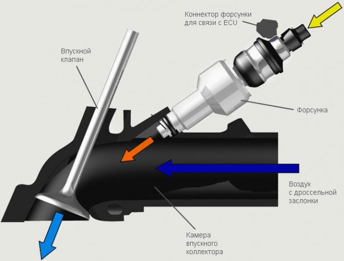 Инжектор обеспечивает впрыск топлива либо в поток воздуха, либо в камеру сгорания.