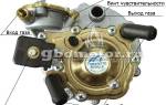 Под управлением ЭБУ оборудования, отключаются бензиновые форсунки, и газовый клапан пропускает смесь, в сжиженном виде фильтруя ее, к редуктору испарителю. Топливо, проходя через 1 и 2 ступень редуктора, переходит в газообразное состояние с понижением давления, которое на выходе составляет 0,9-0,95 атмосфер.