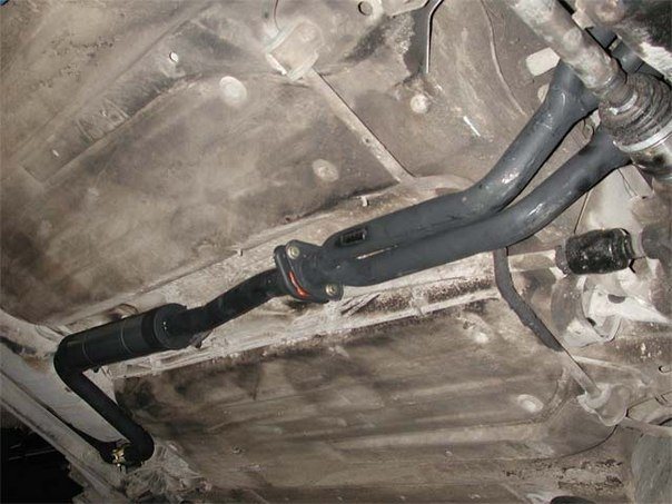 Глушитель крепится специальными резиновыми подушками за выгнутые металлические крюки, смягчая колебания от автомобильного выхлопа