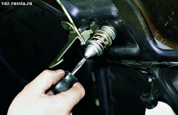 2) Затем при помощи отвертки подденьте её и вследствие чего снимите с кузова автомобиля.