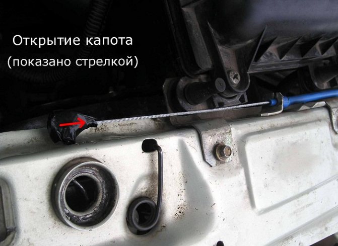 Стандартное решение проблемы: открываем капот, если порвался тросик в салоне автомобиля