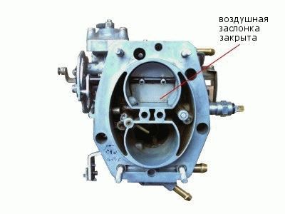 4. Вытаскиваем на себя «подсос», запускаем двигатель. Заслонка «подсоса» при этом должна быть полностью закрытой.