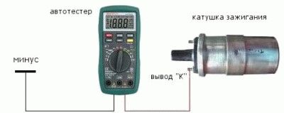 3. Начинаем регулировку. Прогреваем двигатель, выключаем его и подключаем тахометр следующим образом.