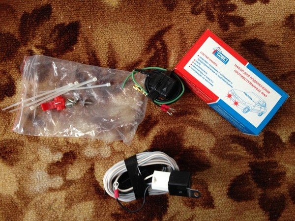 В комплекте с проводкой, реле и колодкой, имеется кнопка, жаль, что без подсветки, и подробная инструкция по установке