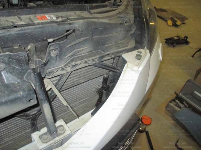 - Демонтируйте защиту моторного отсека. Она крепится семью болтами и двумя пистонами.