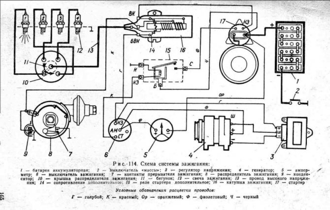 Общая схема зажигания для моделей УАЗ старых лет выпуска