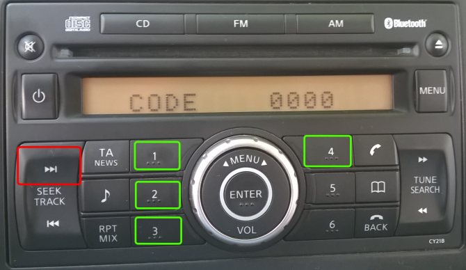 Если магнитола не сенсорная, то код вводится последовательным нажатием на нужные кнопки радиостанций (рядом с кнопками есть подсказки, при этом цифры на экране будут меняться) , после того как на экране отобразится нужный код, для подтверждения кода нужно нажать на кнопку ENTER или ОК.