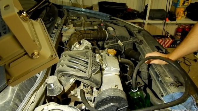 В современных машинах отсутствует возможность откачки бензина через наливную горловину топливного бака. При этом, слив топлива осуществляется с инжектора.