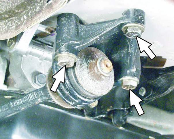 - Затем отворачивают крепленые гайки мотора к КПП и снимают опору.