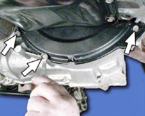 – затем поочередно открутить четыре точки крепления коробки передач к двигателю;