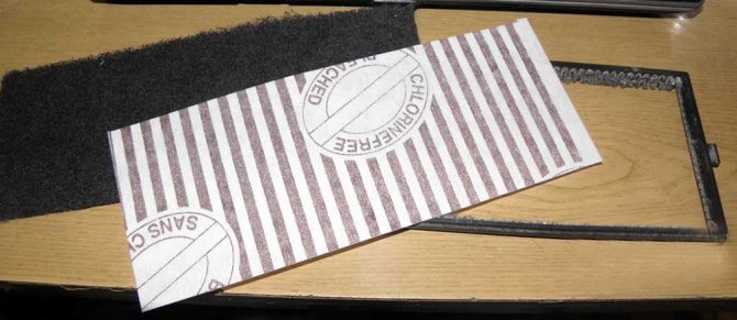 - приклеиваем заготовку к рамке (если устанавливается двухслойный материал с активированным углём, необходимо прочитать инструкцию, в каком порядке следует укладывать слои);