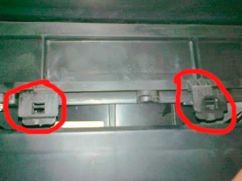 Вытаскиваем их по очереди из пазов, а затем вытаскиваем бардачок из пазов и убираем в сторону.