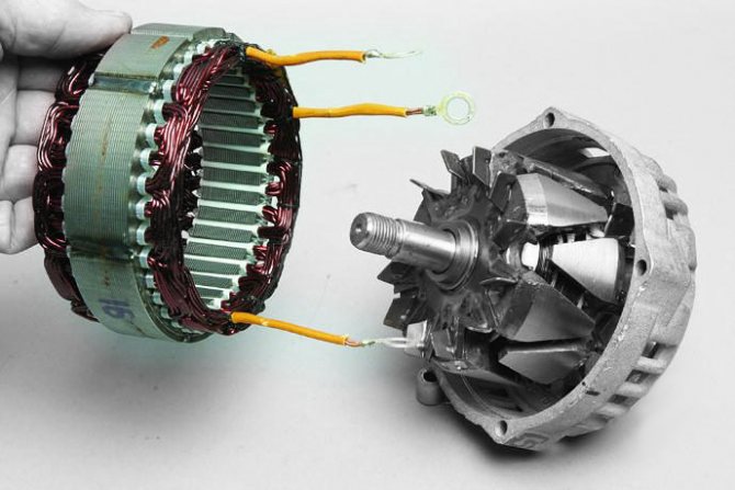 Внутреннее строение автогенератора очень похоже на типичный электромотор, но с определенными отличиями. Причем отличия в детали присутствуют как внешние, так и внутренние. Так, в схеме автогенератора имеются такие элементы как: