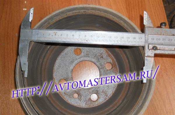 Если барабан сидит на ступице плотно, то нужно обработать фланец WD-шкой или уксусной эссенцией и обстучать молотком через деревяшку. При сильном износе барабана, если снятию мешают колодки, нужно будет отпустить натяжение тросов «ручника» и через отверстие в опорном диске (с обратной стороны, закрывается резиновой пробкой) отверткой отодвинуть разжимной рычаг стояночного тормоза. Но это как крайний вариант, бывает редко. В процессе длительной эксплуатации по краю рабочей поверхности барабана образовывается буртик, его следует сточить напильником или наждачным камнем. После удаления буртика промеряем диаметр тормозного барабана штангенциркулем не менее чем в двух противоположных направлениях.