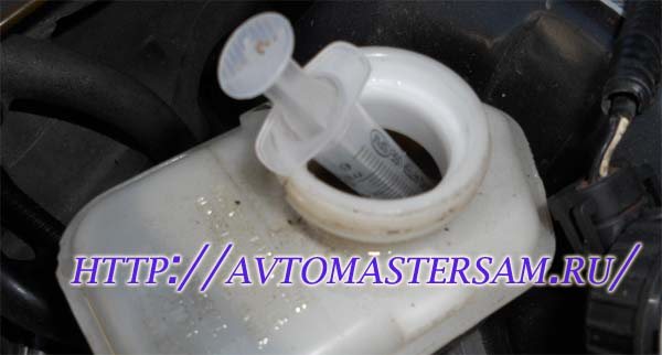 Проверьте уровень тормозной жидкости в бачке, возможно, потребуется немного отобрать (например, с помощью шприца), так как при сжатии поршней рабочих цилиндров уровень заметно поднимется.