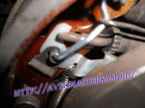 В конструкции заднего тормоза очень интересно реализован механизм автоматического регулирования зазоров между колодками и барабаном, благодаря раздвижным распорным планкам, одновременно выбирается, по мере износа, зазор в основной рабочей системе и осуществляется регулировка стояночного тормоза. И здесь есть несколько моментов, на которых при сборке следует заострить внимание. Распорные планки и регуляторы с левой и правой сторон автомобиля невзаимозаменяемы