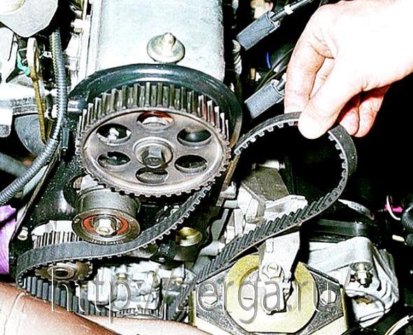 Отпустив ролик можно спокойно снять ремень с шестерни распределительного вала.