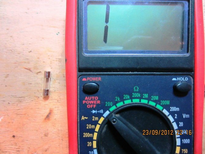- Сопротивление бесконечно большое, никакого звукового сигнала типа «пип» мы не слышим. Предохранитель в обрыве. Его можно выбрасывать в мусорную корзину.