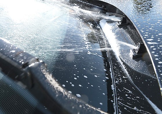 Принцип работы стеклоомывателя заключается в том, что насос под давлением накачивает жидкость из бачка по патрубкам к форсункам. В свою очередь, струйные или веерные форсунки распыляют жидкость, подавая очиститель на поверхность стекла.