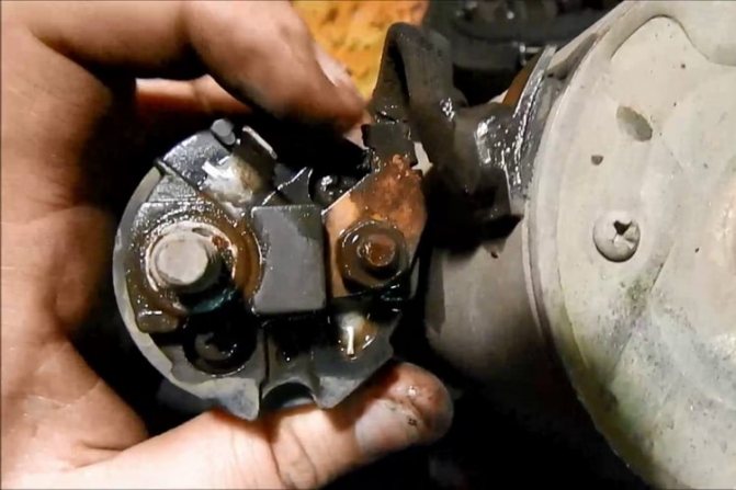 Плохая работа втягивающего реле, отчего оно щелкает, часто бывает вызвана подгоранием пятаков контактов. Через них проходит очень большой ток, поэтому в случае подгорания необходимо разобрать реле и почистить контакты. Однако эта мера лишь временная, поскольку эти контакты с завода обрабатываются специальным покрытием, которое со временем стирается, а зачистив контакты, процесс износа лишь ускорится.