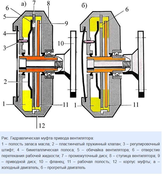 Вискомуфта вентилятора позволяет регулировать скорость вращения крыльчатки в зависимости от температуры двигателя.