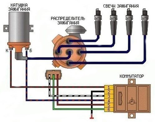 А проверить исправность коммутатора просто. Достаточно снять разъём жгута зажигания с трамблёра и на среднюю клемму кратковременно и многократно подать минус. При каждом замыкании на минус должна проскочить искра с высоковольтного вывода катушки.