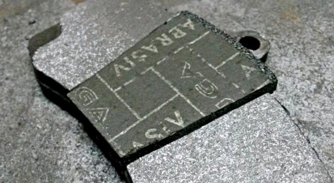 Сделать поверхность тормозного диска более ровной можно при помощи абразивных вставок в колодки. Такой способ потребует минимум инструментов. Достаточно вырезать в старой колодке «окно» и вставить в него абразив. На фото абразивная вставка выполнена из круга для «болгарки». После того, как колодки будут приготовлены таким образом, достаточно установить их на место и немного покататься. Как утверждает автор идеи, достаточно проехать, периодически притормаживая, около 5 километров.