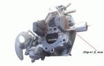 Уход и настройка карбюратораПри необходимости проведения обслуживания, работы проводят в следующем порядке:• демонтируют воздушный фильтр, приводы воздушной и дроссельной заслонок;• отсоединяют трубки вакуумного корректора опережения зажигания, бензопровод, ограничитель оборотов мотора;• отворачивают крепёжные гайки, и демонтируют узел целиком;• производят разборку карбюратора, отдельно отсоединяя следующие детали: топливный фильтр, крышку поплавковой камеры, топливный и вентиль экономайзера, жиклёры, поплавок и распылители;• проводят оценку состояния составных единиц, очистку от отложений смолы, загрязнений, оценку поплавка на предмет герметичности.