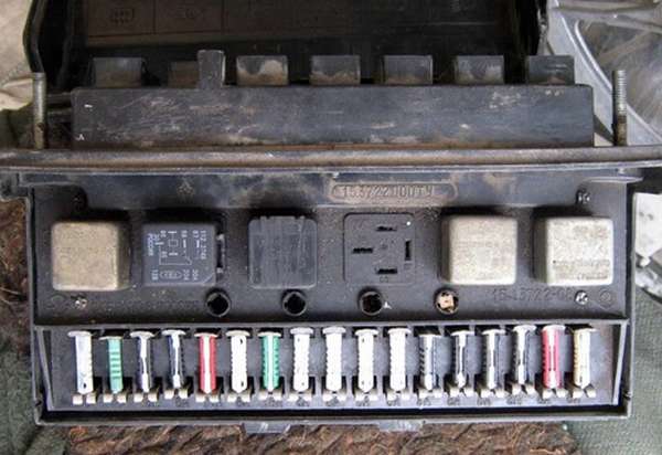 Как видно из описания, постоянно в работе находятся 15 и 2 резервные предохранители. При проверке следует быть осторожным, так как постоянно подключены к бортовой сети цепи звукового сигнала, лампы торможения, розетка для переносной лампы, освещение в салоне, цепи аварийной сигнализации и освещения.
