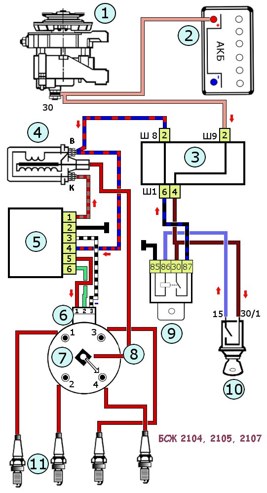 Схема бесконтактной системы зажигания ВАЗ 2105, 2107, 2104
