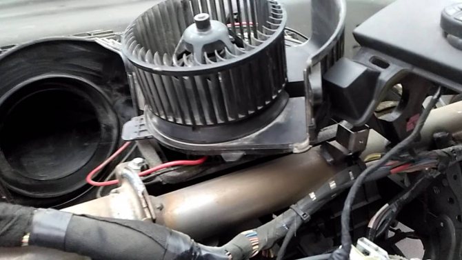 - После извлечения изношенный вентилятор заменяется новым и производится обратная сборка системы отопления и торпедо.