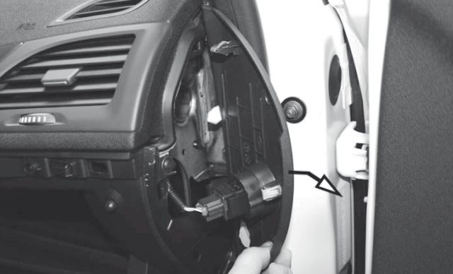 Открываем отделение для перчаток Демонтируем правую часть пластиковой накладки с торпеды.