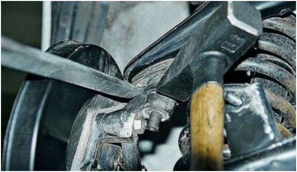 Недостатком клина является то, что в процессе выпрессовки пыльник получит повреждения. Поэтому клин можно использовать только при выполнении замены опор или наконечников.