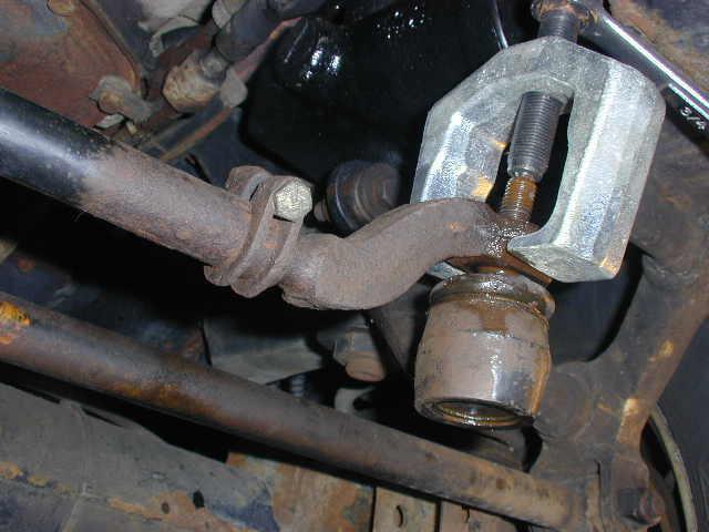 С помощью специального приспособления палец следует выдавить из кулака на подвеске. Для этого нужно приложить немалые усилия.
