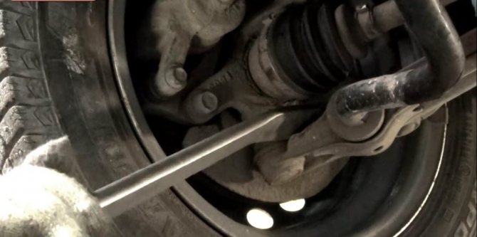 - Снимите колесо, на котором обнаружена проблема с шаровой опорой.