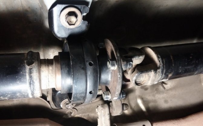 - Теперь смотрите, как закреплен подвесной подшипник на кронштейн, не ослаблено ли это крепление.