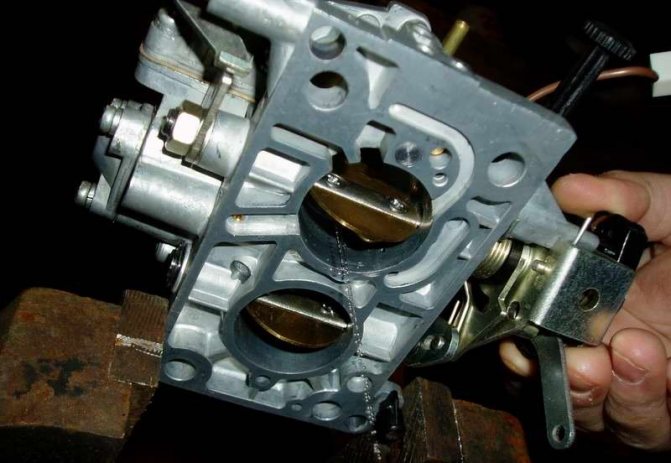 При этой проблеме налицо подклинивание оси заслонки дросселя второй камеры. Заслонка должна всегда находиться в строго определённом положении независимо от режима работы карбюратора.