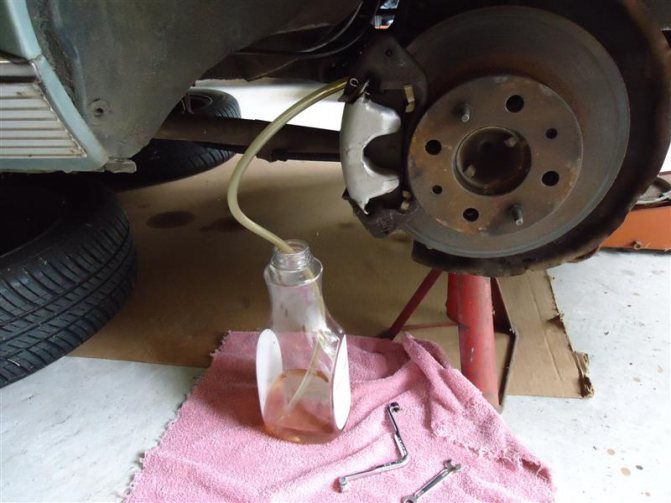 - Открутите клапан минимум на пол оборота. По мере слива жидкости торможения, педаль начнет постепенно проваливаться.