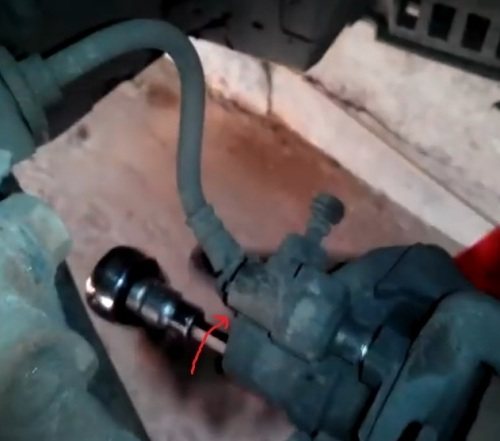 …сдвигаем скобу, утапливая поршень в цилиндр.