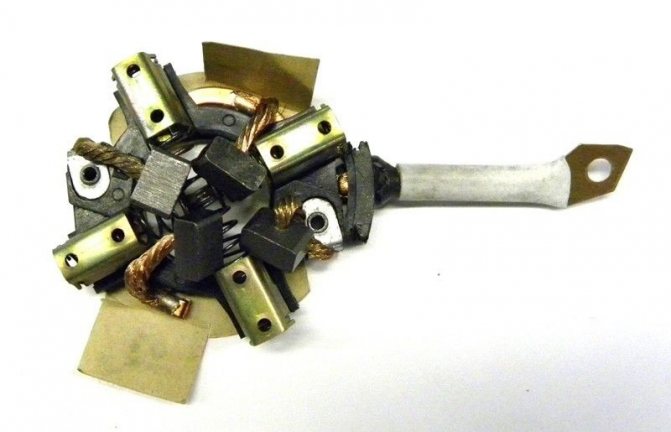 Щетки стартера это медно графитовая деталь, проводящая электрический ток. Щетки напрямую контактируют с якорем стартера и трутся об его коллектор, проводя электрический ток. В процессе длительной эксплуатации щетки из-за трения приходят в негодность и подлежат замене. Данная поломка не является дорогой и сложной достаточно лишь снять стартер и заменить щетки.