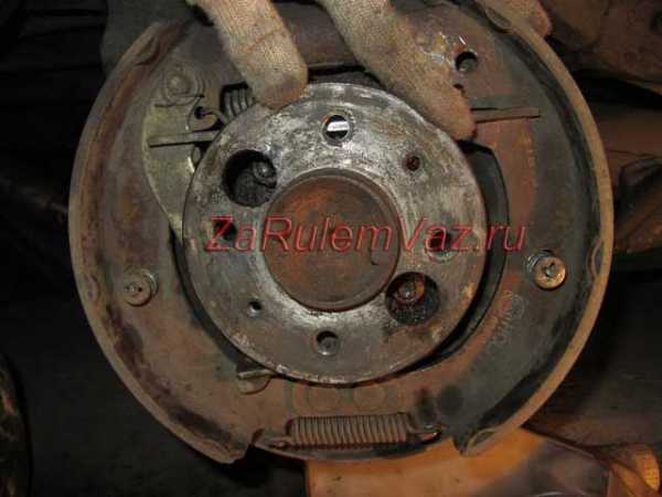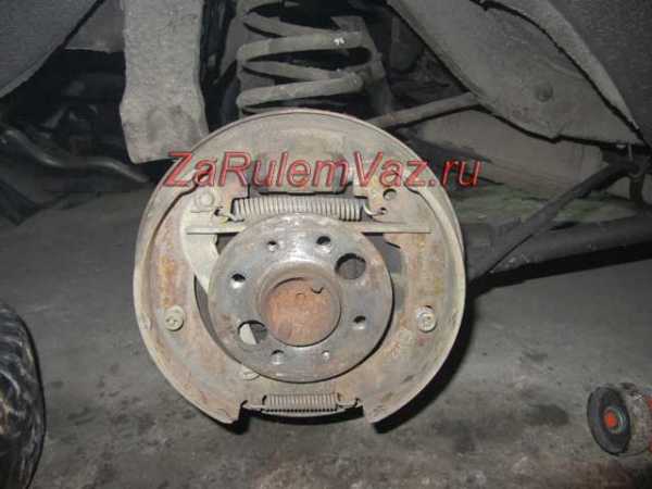 Итак, первым делом необходимо снять заднее колесо автомобиля, предварительно подняв автомобиль домкратом. После этого выполнить демонтаж заднего тормозного барабана. Когда с этой задачей справились, то получается примерно следующая картина, которая показана на фото ниже: