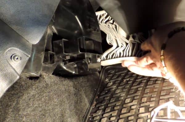 При работе возникают некоторые неудобства: размещение заглушки под бардачком в области кресла для пассажира спереди вызывает необходимость выполнять работы лежа.