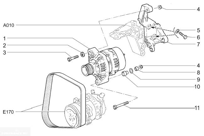 Демонтаж генератора с ремнём вспомогательных агрегатов