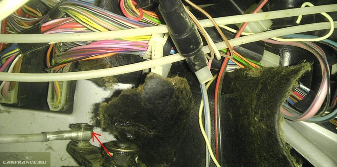 - Коврик с водительской стороны убирается и отгибается утеплитель пола салона в районе педального узла;