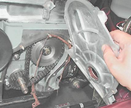 - далее шестерня коленвала, на которую накидывается новая цепь;