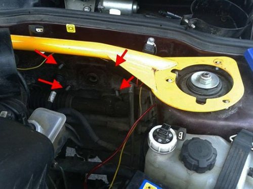 - Снимать усилок будет мешать тормозной цилиндр. По сему, вы можете сначала снять его, или просто отсоединить от него трубки-штуцеры и отодвинуть его в сторонку. Это как ваша душа пожелает.